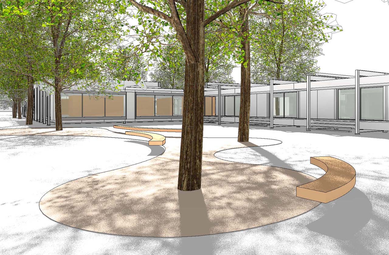 die ausgangslage ist geprägt durch den park mit dem schützenswerten baumbestand und die bestehende schulanlage, die als frühwerk von fritz haller in das inventar schützenswerter bauten aufgenommen wurde. charakteristisch für diese schulanlage sind die aufteilung des raumprogramms in masstabsgerechte einheiten, die modulare struktur der baukörper, die geschickte anordnug der baukörper zur bildung von aussenräumen hoher qualität und die ablesbarkeit der funktionen in der baustruktur. diese themen werden beim geplanten erweiterungsbau weitergeführt und neu interpretiert. der respekt gegenüber der einzigartigen ausgangslage bestimmt die projektentwicklung. für das erweiterungsprojekt wird unter den bäumen eine über dem boden schwebende, eingeschossige struktur vorgeschlagen. diese ist modular aufgebaut und enthält zwei raumtypen mit je 60m2 nutzfläche und unterschiedlichen raumhöhen für haupt- und nebennutzungen. | |