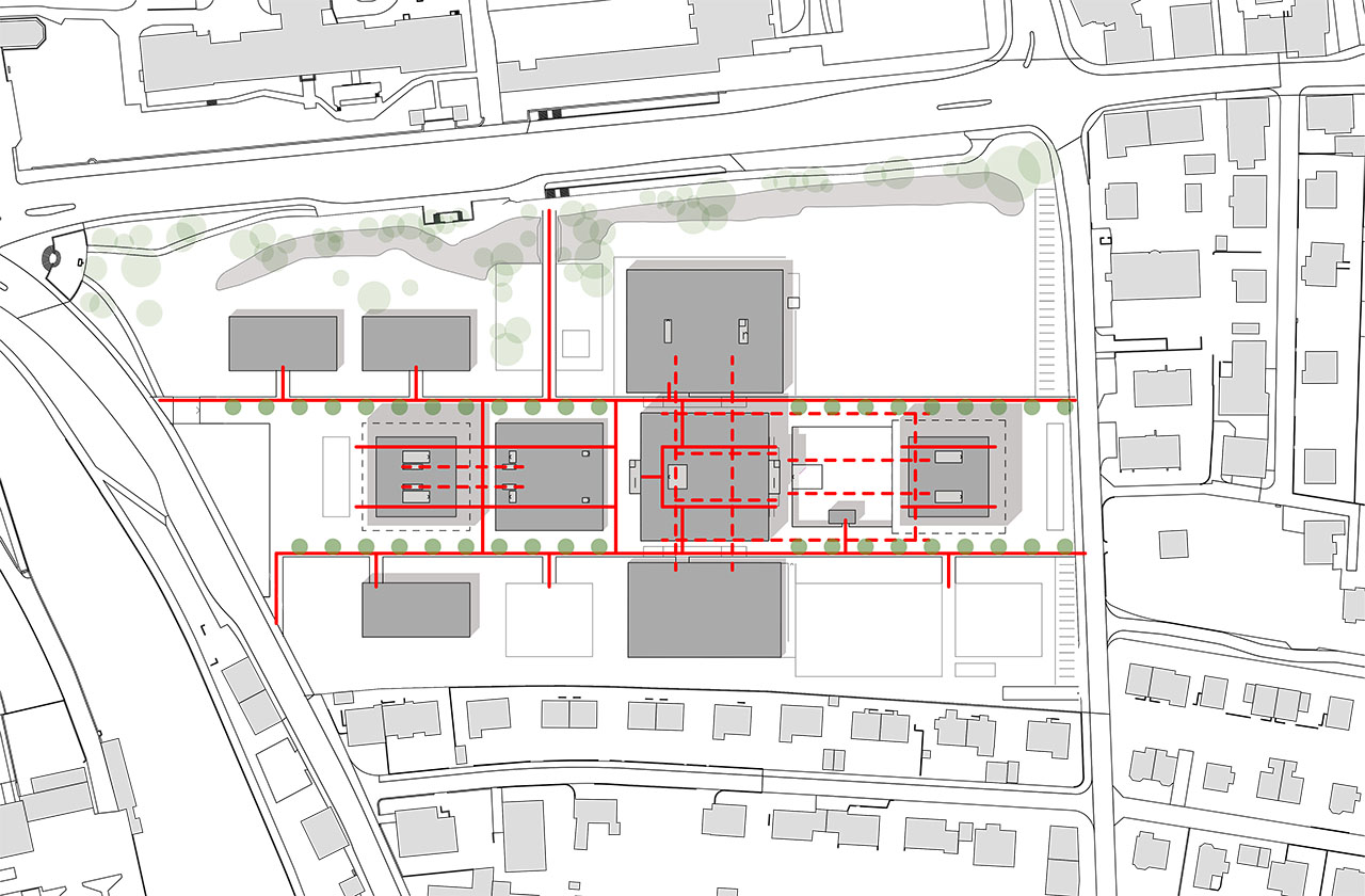 | vision | unser projekt soll auch aufzeigen wie sich bei einem allfällig späteren ersatz der gebäude der zweiten bauetappe «e2 pas» die schule wieder zu einem harmonischen ganzen entwickeln könnte. schon beim ersatz des zentralen baus «geb 6 pas» könnten die hauptachsen mit den baumreihen wieder hergestellt werden und in einem möglichen endzustand bei ersatz aller gebäude «e2 pas» könnten sämtliche vorgaben des masterplans von fritz haller eingehalten werden. |